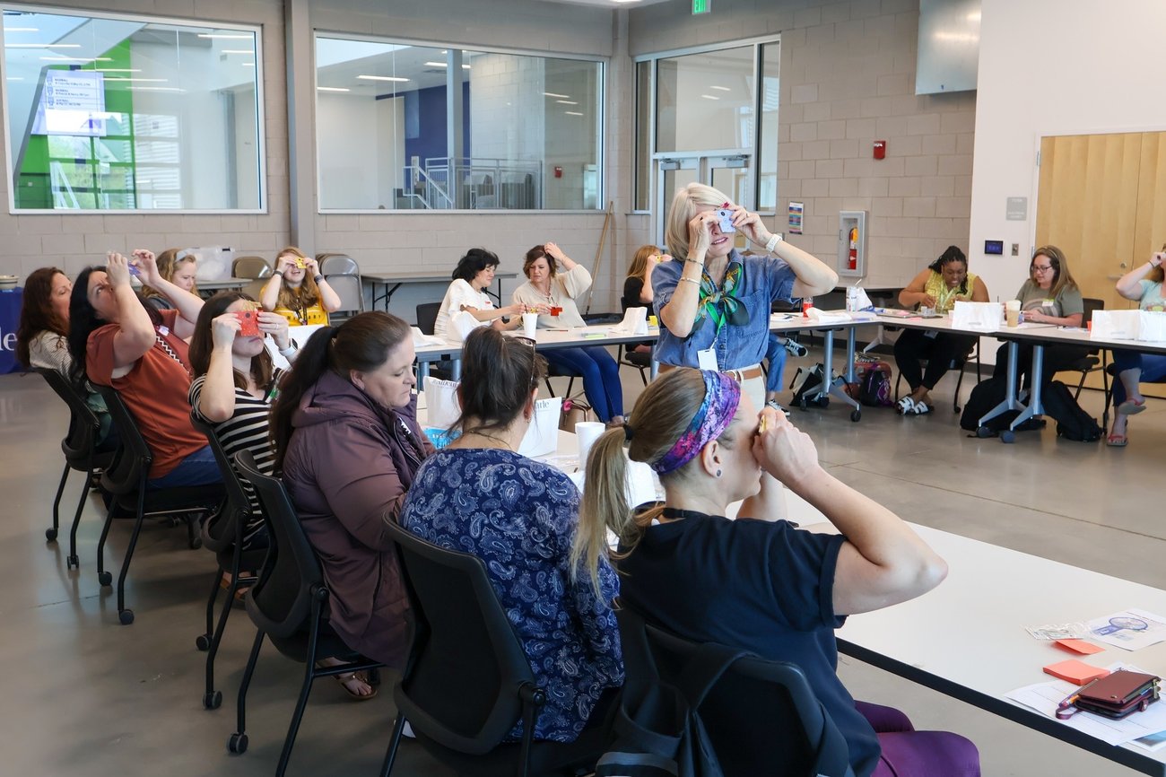 The workshop, hosted in partnership with Cleveland Community College and NC BioNetwork, brought together teachers for hands-on training using Foldscopes, a low-cost, paper-based microscope, making it easier to explore microscopy and enhance science learning in the classroom. |